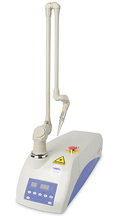 The 40W CO2 Surgical Laser combines features of previous CO2 surgical lasers. Like the 15W and 30W CO2 Surgical Lasers, the 40W CO2 Surgical Laser has an articulated arm and aiming beam for precision. The 40W CO2 Surgical Laser has an improved touchscreen, average power of 40 watts at the handpiece output and a 25-watt peak power SmartPulseTM technology. SmartPulseTM technology ensures optimal incision efficiency and has an enhanced CO2 metal RF canister which provides 2 to 3 times longer lifespan compared to the glass tubes in the 30W CO2 canister.[vi]
